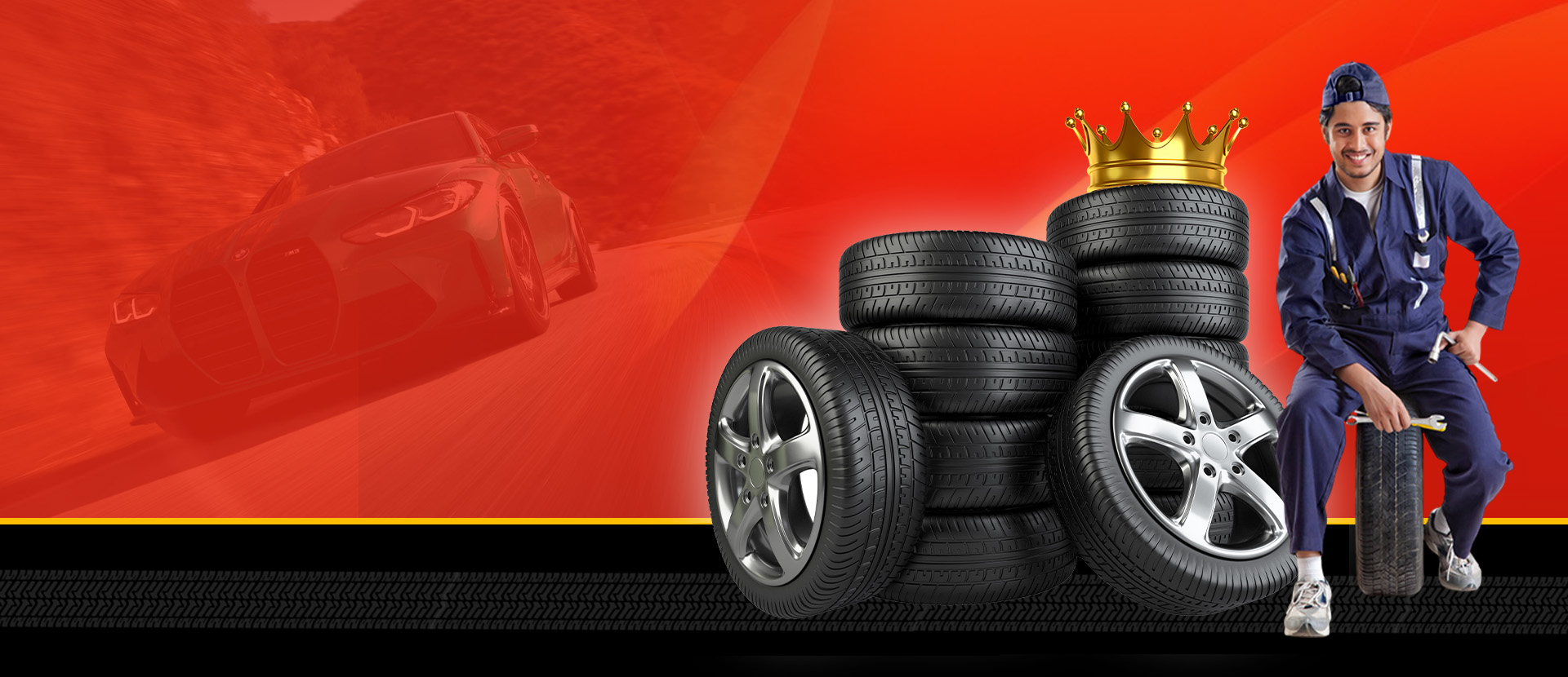 Genuine tyres, batteries, and alloy wheels from top brands.